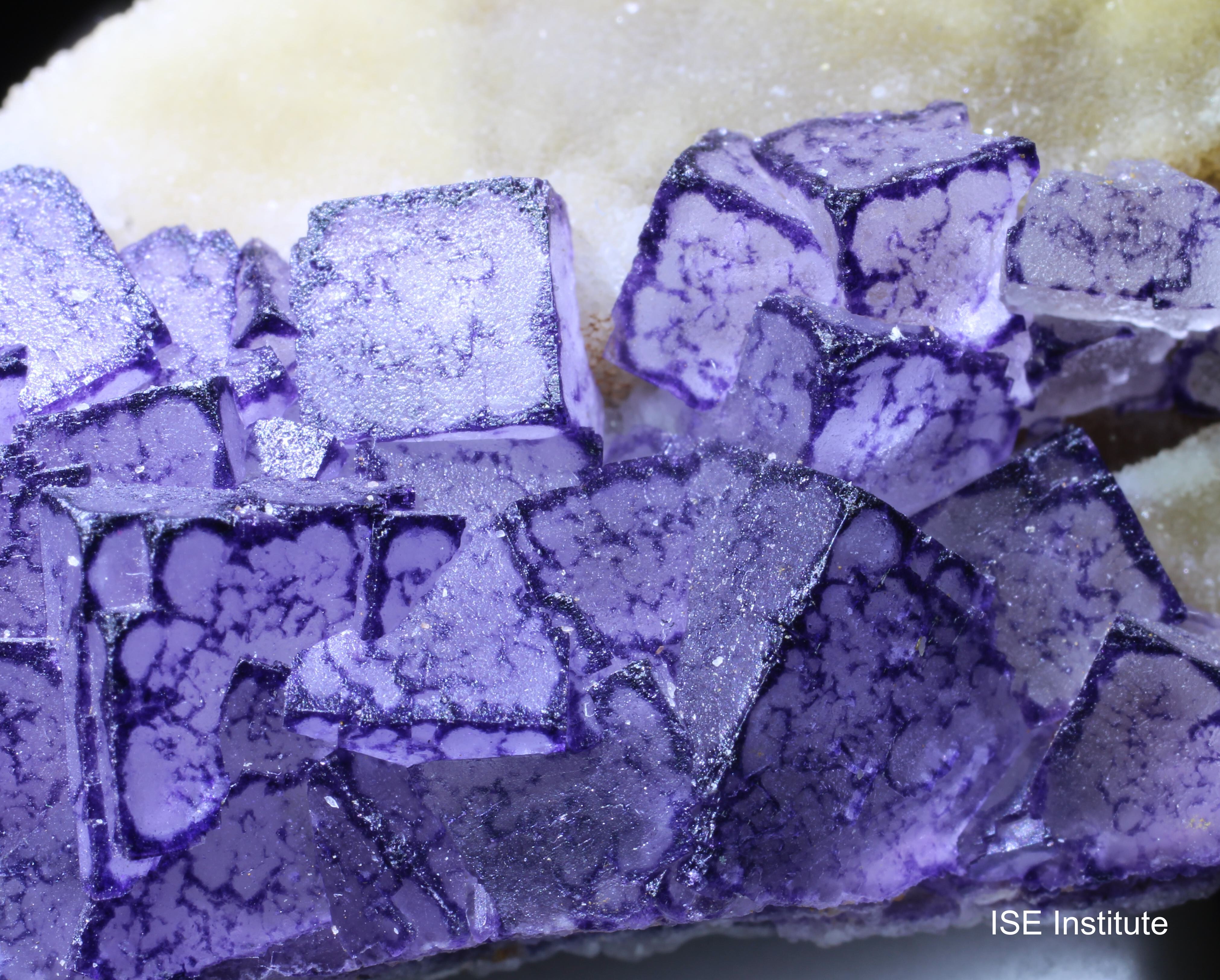 この産地の蛍石は、熱水鉱床内で生成され、カルサイトや黄鉄鉱、石英などの鉱物と共生することが多いです。