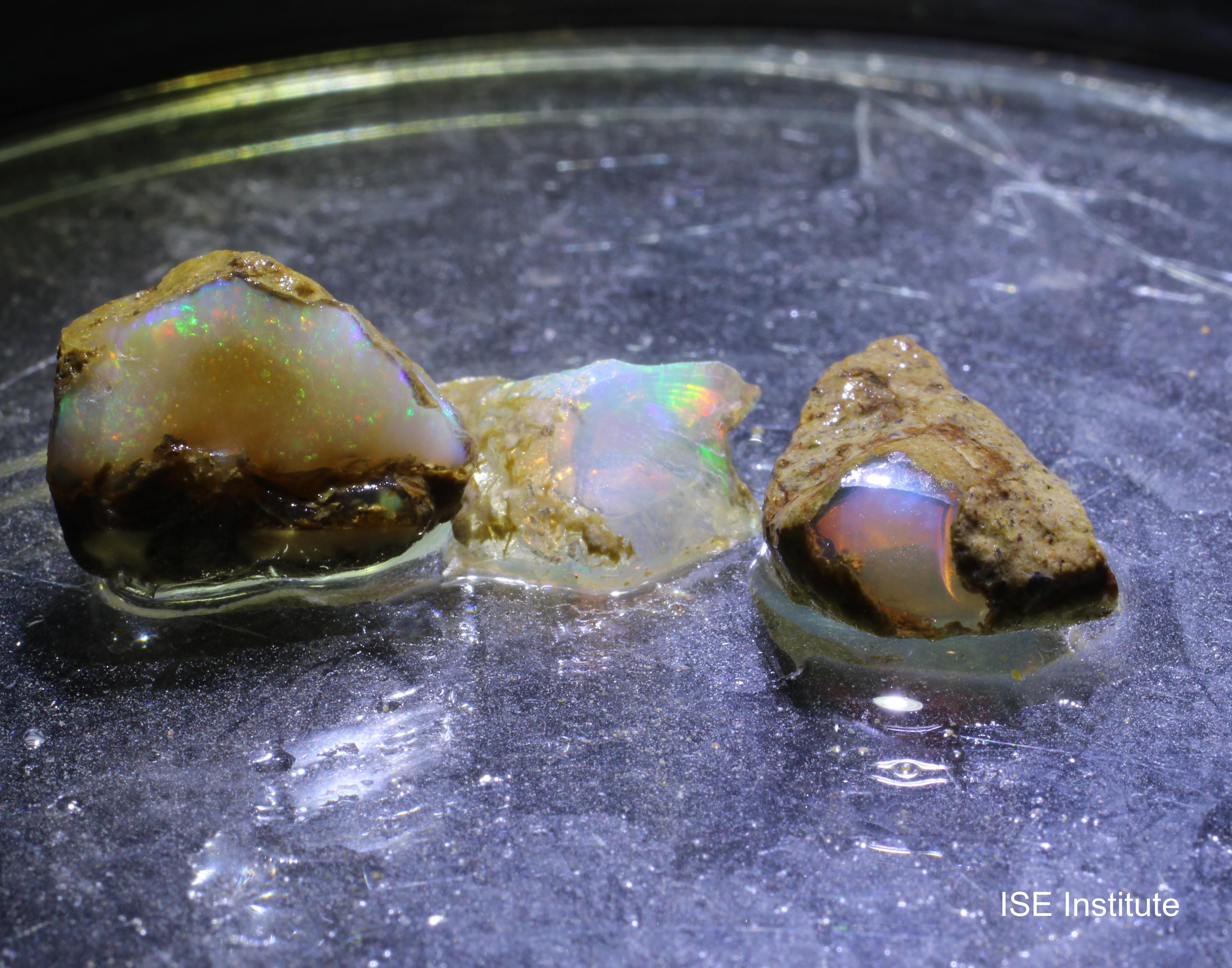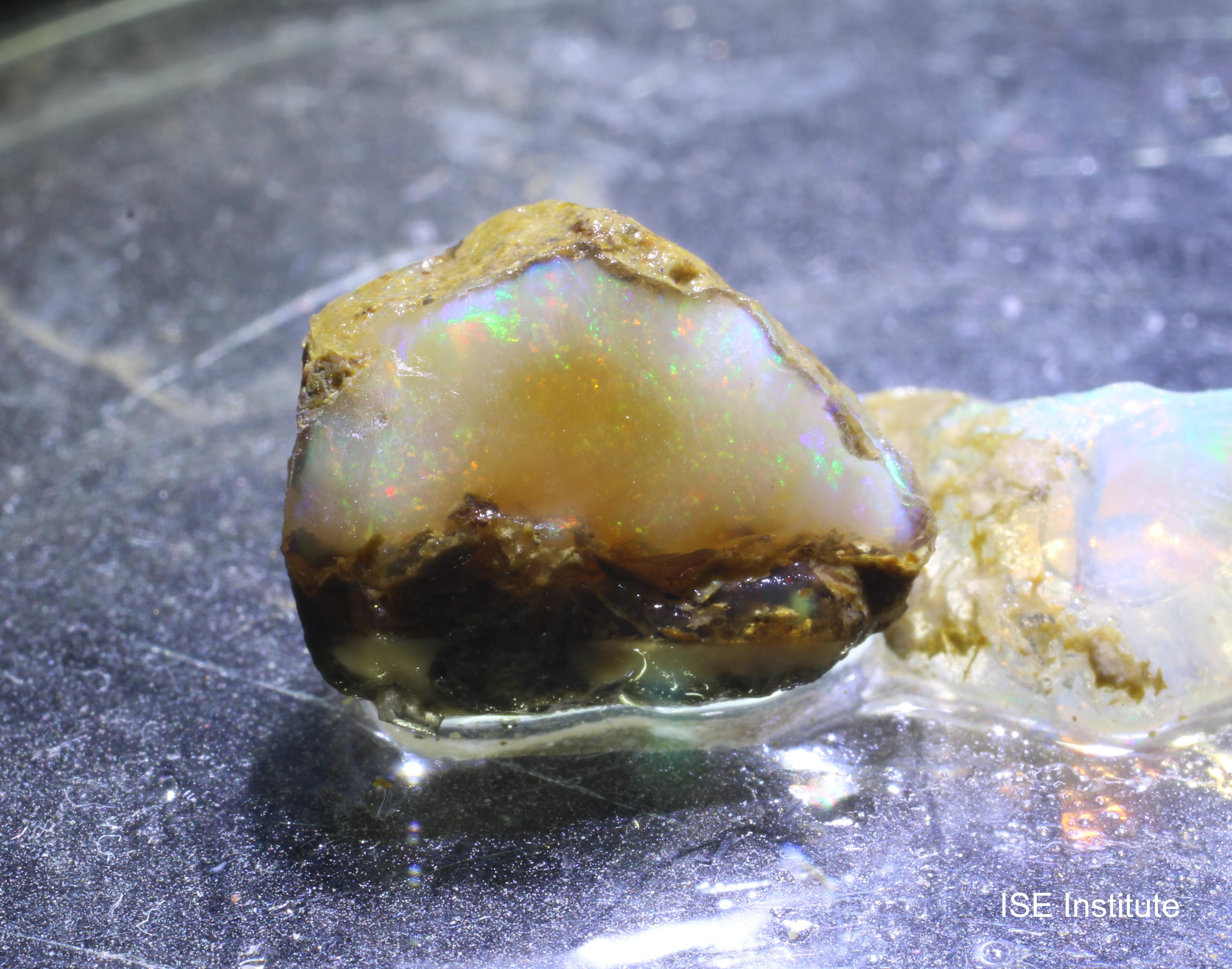 メンズギシ地区、北ショワ地方、エチオピア産のオパールは、その美しい色彩と独特の輝きで広く知られています。いわゆるエチオピアオパールです。 オパールは、二酸化ケイ素を含む水和鉱物で、しばしば内部に美しい虹色の光を反射する特性を持っています。この鉱物は、しばしば乳白色から透明までの色合いを持ち、その内部に微細な球状構造を形成することで、遊色効果を引き起こします。